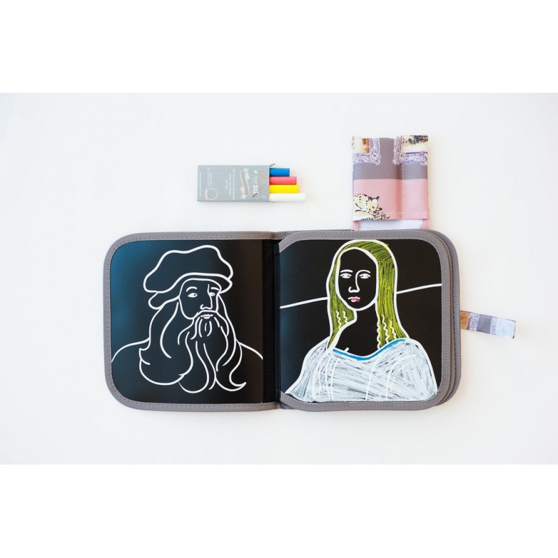 Here is a line of award-winning reusable coloring books filled with famous paintings. Just like our Doodle it and Go Chalk Book, there are eight pages. But our Artist series is filled with iconic paintings for your child to color. Watch your budding artist flourish into the next Monet, Van Gogh or Da Vinci of our century
