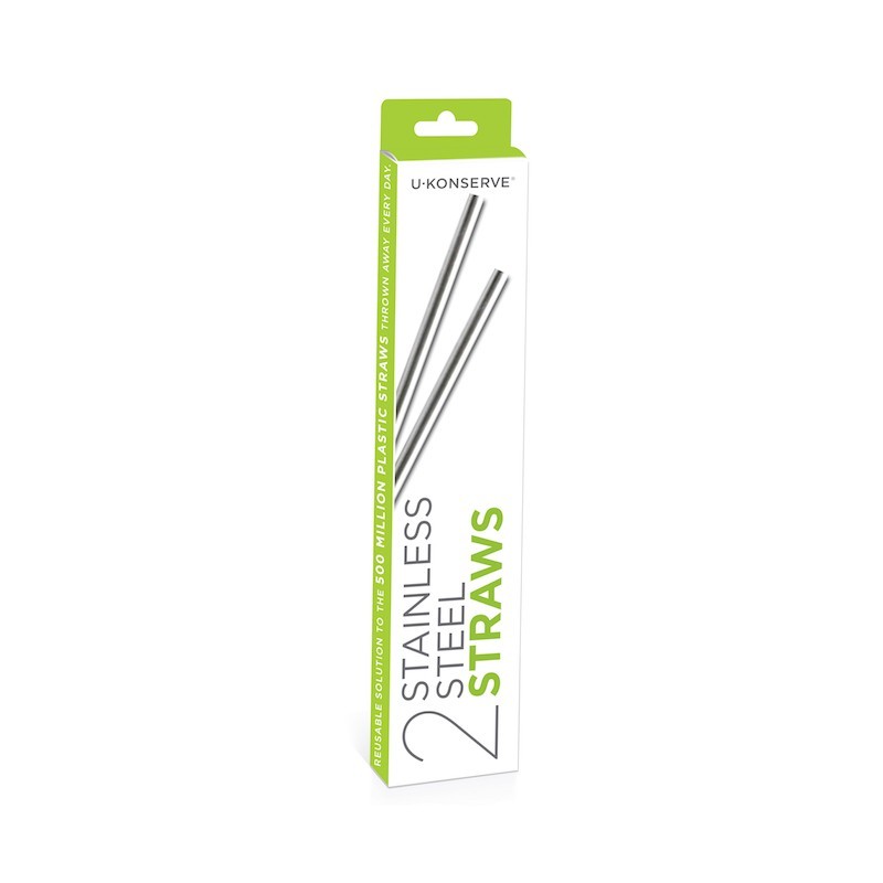 Help eliminate the millions of plastic straws used every day with stylish reusable ones! This two-pack of durable and reusable stainless steel drinking straws are made from 304 (18/8) food-grade stainless steel. Comes in recyclable card box. Ideal for cold summer drinks, fruit smoothies and dinner party cocktails.