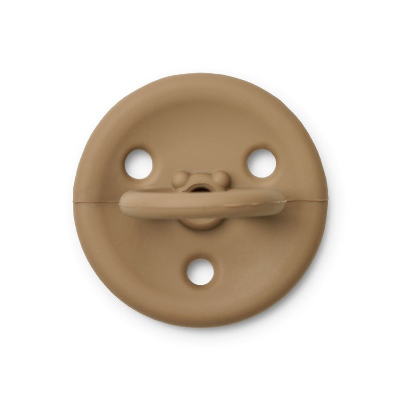 Round nipple pacifier for newborns with cute ear-shaped details.