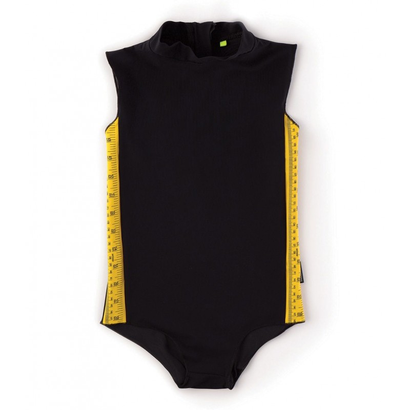 One-piece swimsuit for girls. it zips in front with a high collar like a badass surfer girl’s wetsuit.