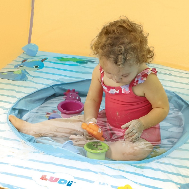 Σπαστή τέντα παραλίας με πισίνα που θα προστατεύσει απόλυτα τα παιδιά από τον ήλιο και τον αέρα και θα τους προσφέρει άφθονη διασκέδαση και παιχνίδι. Η τέντα διαθέτει δείκτη προστασίας 50UV από την ηλιακή ακτινοβολία. Κλείνει και ανοίγει εύκολα και αποθηκεύεται στην τσάντα μεταφοράς.