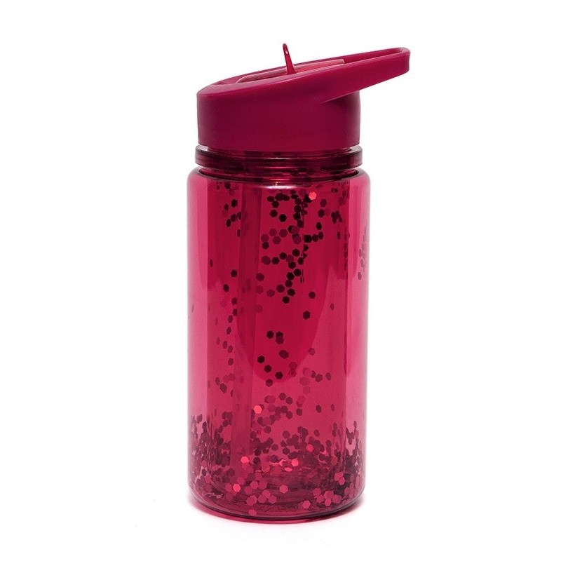 Μπουκάλι με διπλά τοιχώματα γεμάτο με κόκκινο λαμπερό glitter και ενσωματωμένο καλαμάκι. Πολύ ξεχωριστό.